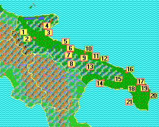 Sulla cartina sono riportate le posizioni dei castelli. Selezionare dall'elenco a lato quello del quale si vogliono avere le informazioni.